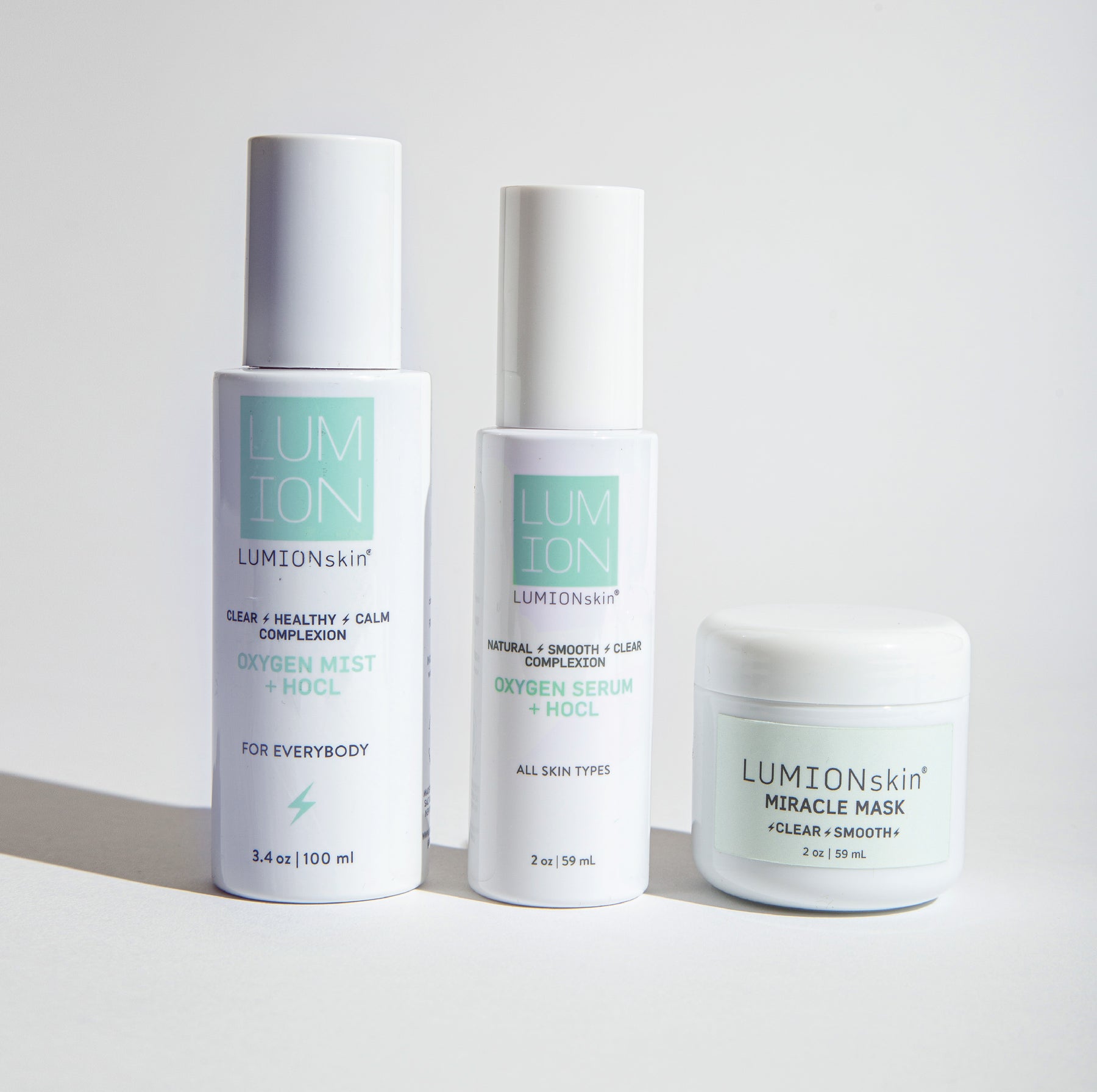 Your complete routine, powered by hypochlorous acid (HOCl), for visibly clear, calm, radiant skin.